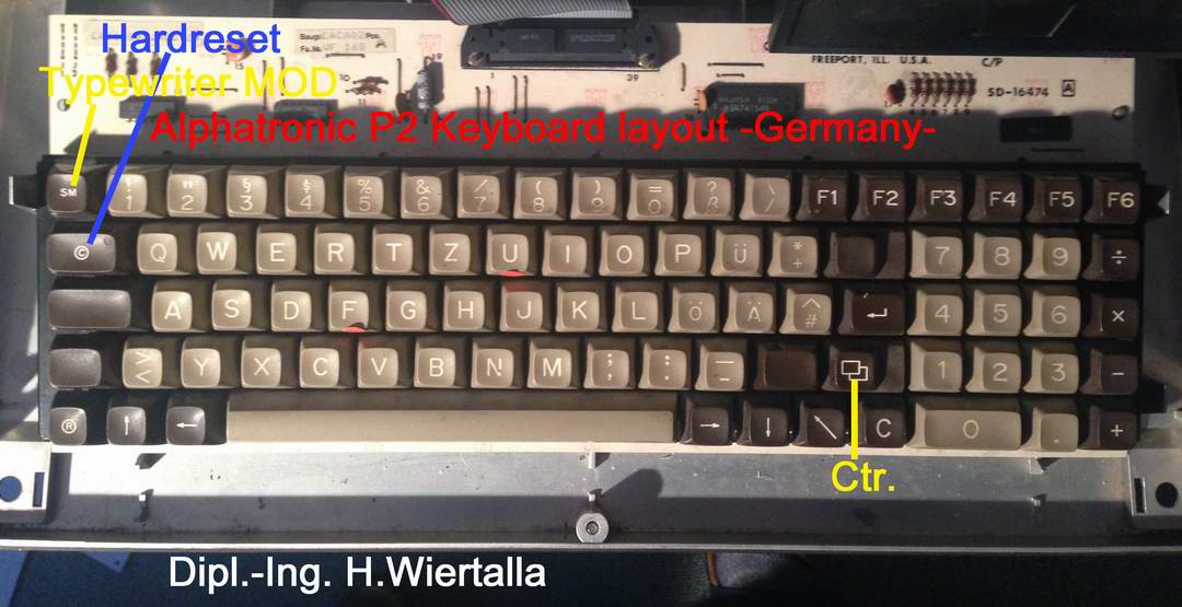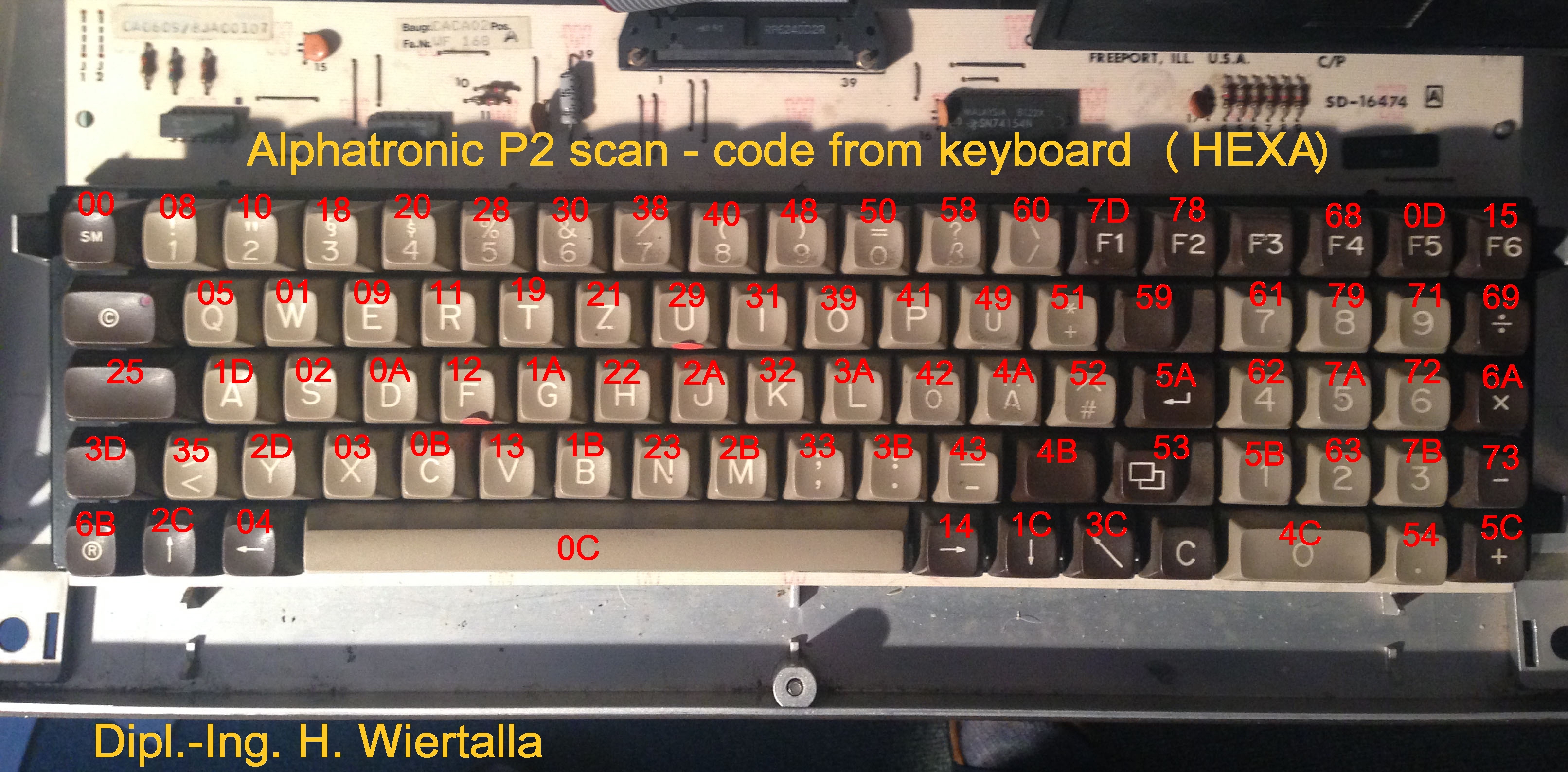 Der kompakter Ablauf /sequence : 1.) Keystroke generate a scancode 2.) Scancode as index into theMOS-Table 3.) If a function code processed by MOS 3a) 8-bit characters by 7 bits convert characters 4.) character deliver - for processing / show ![]() 7 Bit Standard ASCII Code Dazu ist hier bei einige - Nationalen Zeichensätzen verschiedene Display-Character. Das wird im EPROM beim Displaycontoller gemacht. Overview key handling Alphatronic P2 |
