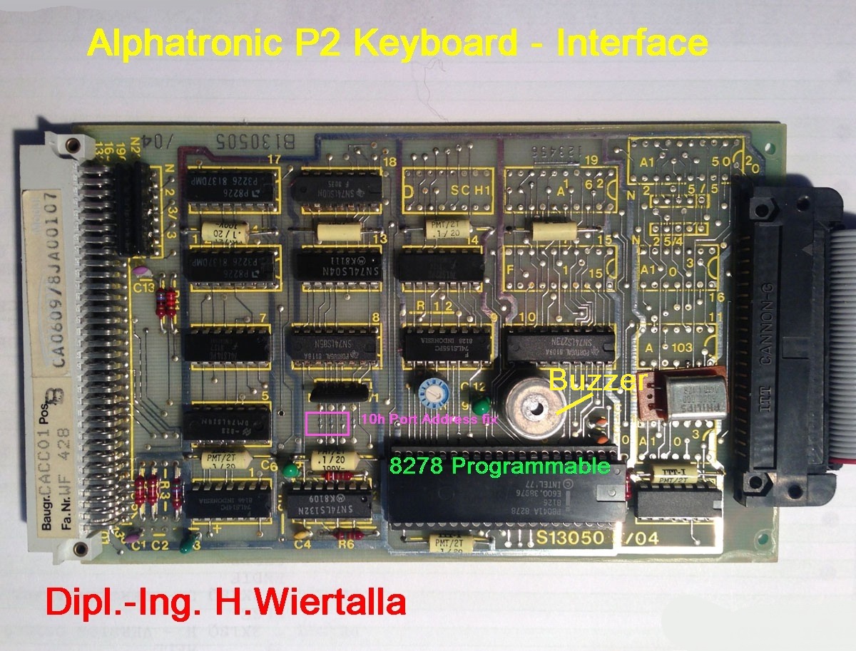 Eine TASTE (key) (update 05-Mai-2016), der Weg bis zur Anzeige (character), wie geht das bei einer Alphatronic P2 ? Wie hänge ich eine eigene Tas-Tabelle ins MOS? Overview key handling Alphatronic P2 Eine Tastenkappe ist mit Symbolen (Buchstaben, Ziffern, Sonderzeichen) bedruckt oder eingraviert. Entscheidend ist die Position einer Taste - was damit gemacht wird. Die Position einer Taste liefert einen sogenannten Scan-CODE ab.Vom Keyboard-Interface wird der Scan-CODE (meist lückenhaft von 00h-7Fh) über eine interne TASTATUR-Tabelle (MOS ADR: 0EF0h, 100h Laenge, unshift von 00h-07Fh und ab 80H-0FFh mit shift) als Index zu einem Anzeige - oder Funktionscode verwendet. ![]() Keyboard - interface mit 8278 controller How goes with the check sum in the MOS? I shows is exactly here. |