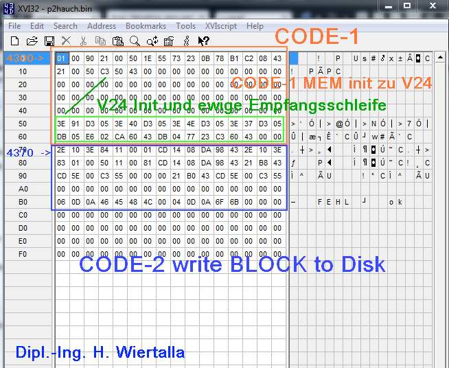 cp/m Alphatronic P2 Programme TPA 100h: Kurzinfo /instructions Hinweise und Informationen hier: K U R Z - A N L E I T U N G E N / Instructions find Ports in PROMs and/or cp/m YMODEM-Protocol, files V24 send/recive Binaer-range to/ from Diskette P2 bring 1kB Bloecke CRC-16 anzeigen Test Beschreibung als pdf's: (SKS/KISS) -> MOS P2 1-Kommandos und System_Aufrufe MOS 2-Floppy - Aufruf_Beschreibung Floppydisk 3-Display - Aufrufe_Beschreibung Display Tastatur E P R O Ms MOS for Alphatronic P2, binär (content) BIN File 3 x 2kB EPROMs of my P2. TA2P_EPROM1_bis_3.bin (3 x2kB) (update 03.oct.2015) JaumeEP.bin sample version spain (from Jaume Andorra) P2 Signaturen: Triumph Adler TA (Set - Germany) prom2p00.bin EProm 1 "033" 0x7b,0xb3 prom2p01.bin EProm 2 "42D" 0x0c,0x1e prom2p02.bin EProm 3 "14G" 0x07,0x8e How goes with the check sum in the MOS? I shows ist exactly. Viel Erfolg nach dem Studieren -einfach machen. Ach ja, weitersagen. Dipl.-Ing. Helmut Wiertalla |